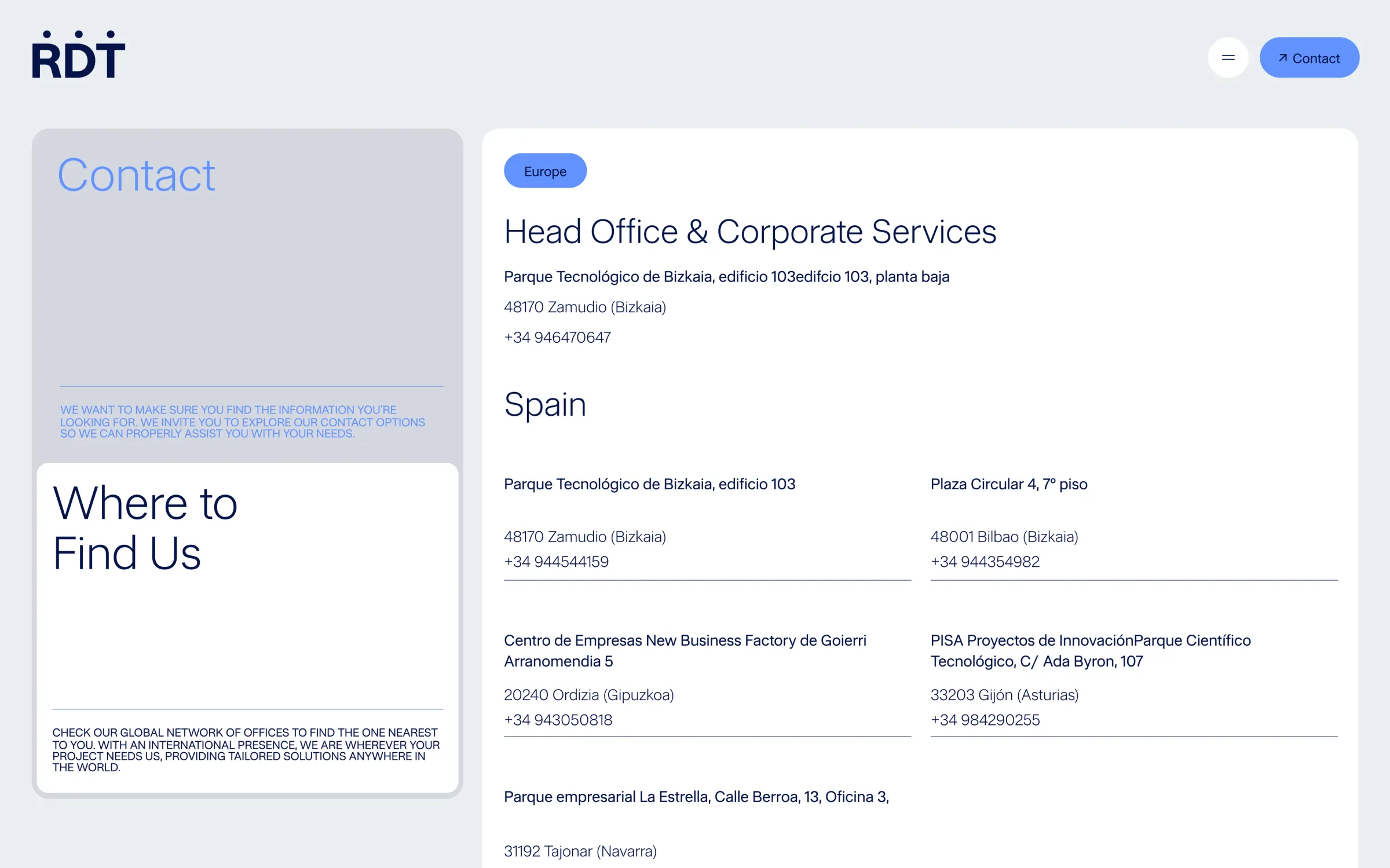 A partir de este marco, desarrollamos el diseño y la experiencia de la nueva web corporativa de RDT, trasladando la estrategia de marca a un entorno digital claro, estructurado y alineado con su ambición internacional. El resultado es una web que organiza la complejidad del grupo, refuerza el posicionamiento de RDT como ingeniería global y humana, y se convierte en una herramienta sólida y escalable para conectar con clientes, talento y mercado.